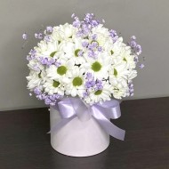 Для девушек приятным сюрпризом станут крупные ромашки в шляпной коробке.